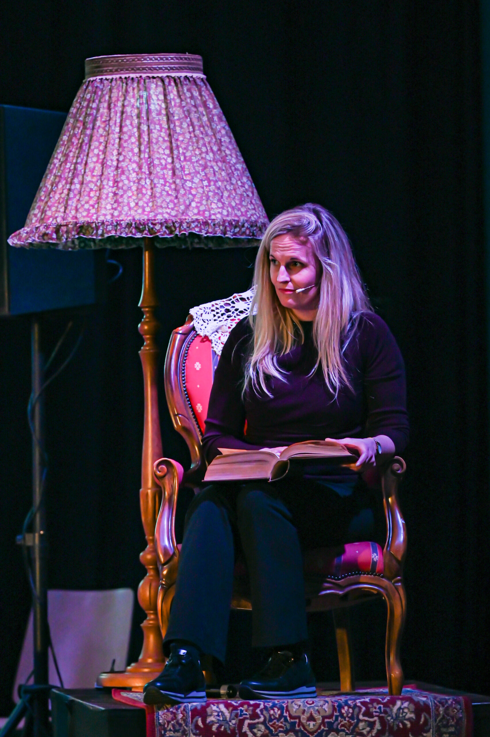 Vanaf het eerste moment hing er mysterie in de zaal. Mist trok langzaam over het podium, kettingen rammelden en duistere geluiden vulden de ruimte. De vertelling voerde de luisteraars mee naar het oude, mistige Hattem, waar de beruchte spookhond zijn schrikbewind voerde. Angst, spanning en moed wisselden elkaar af, met als hoogtepunt de dappere bakker Jan die het monster onder ogen durft te komen.