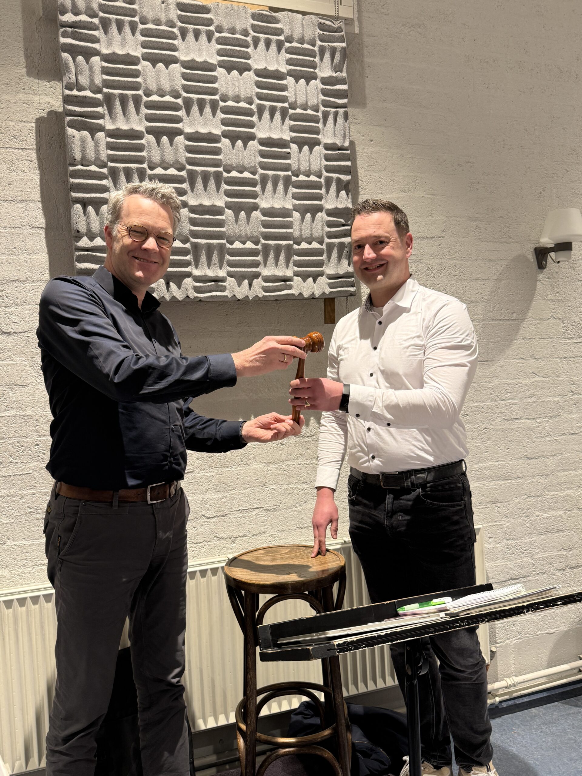 Onlangs heeft Arjan Schrooten de voorzittershamer overgedragen aan Rinze Valkenburg. Arjan was sinds 2013 bestuurslid en trad bij de ledenvergadering af. In die tijd is hij 6,5 jaar voorzitter geweest. Arjan heeft veel voor de vereniging betekent en blijft nog steeds actief in de vereniging.